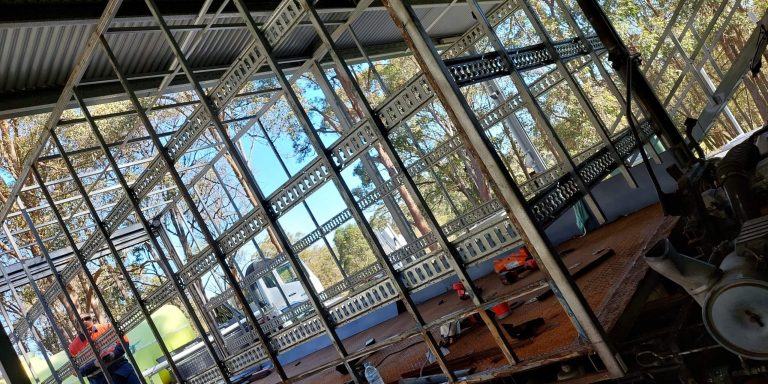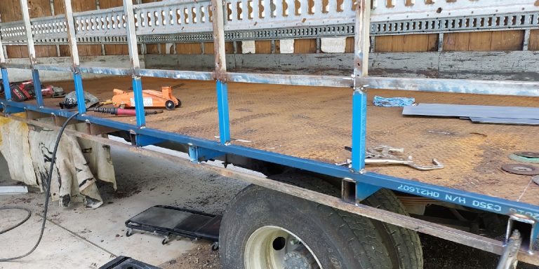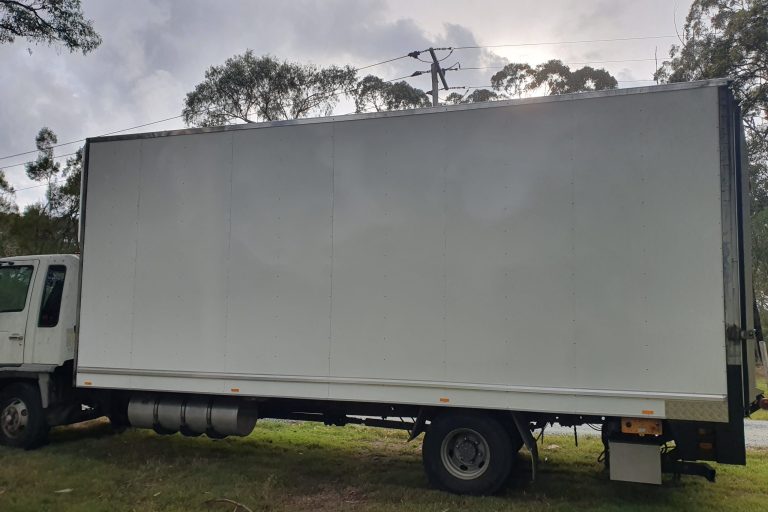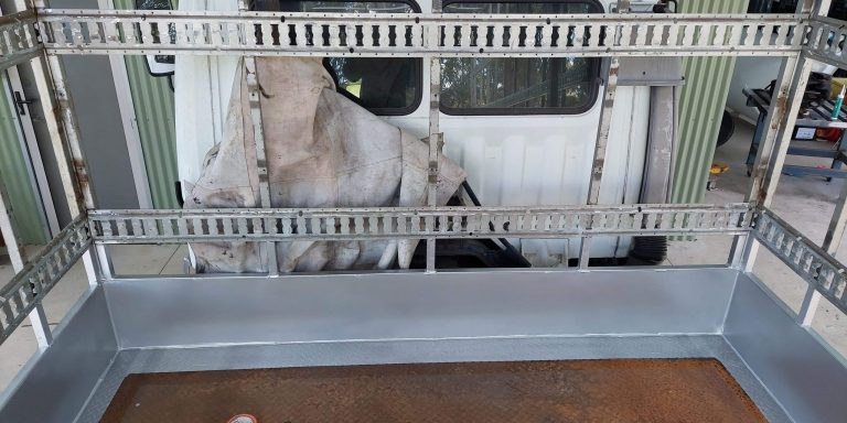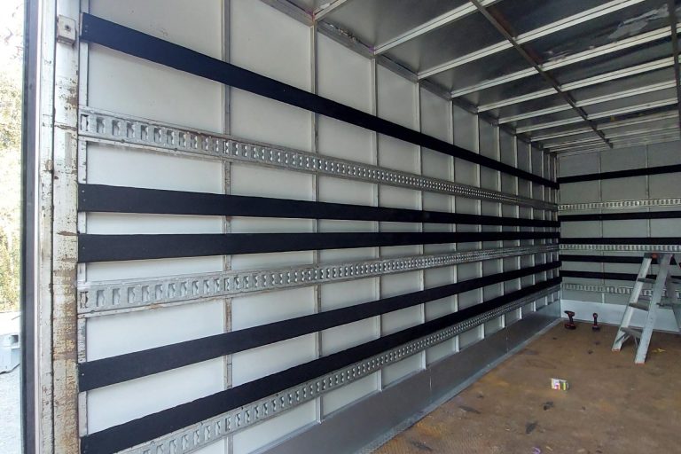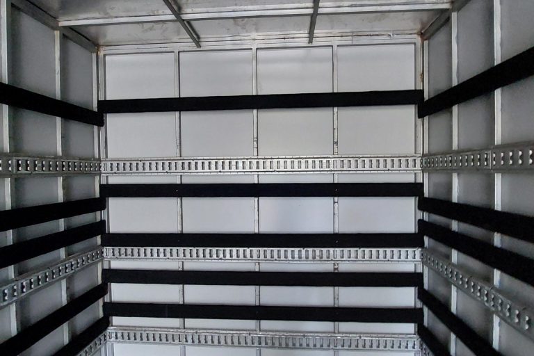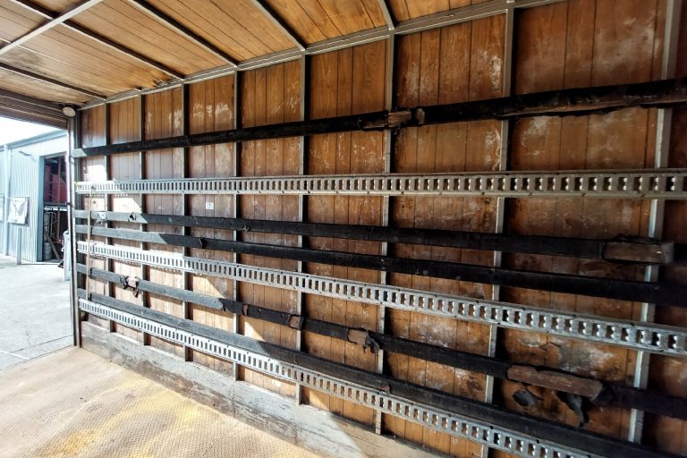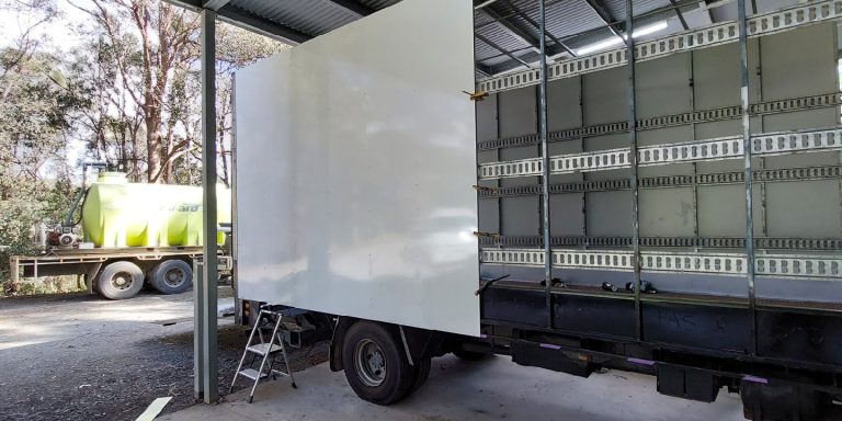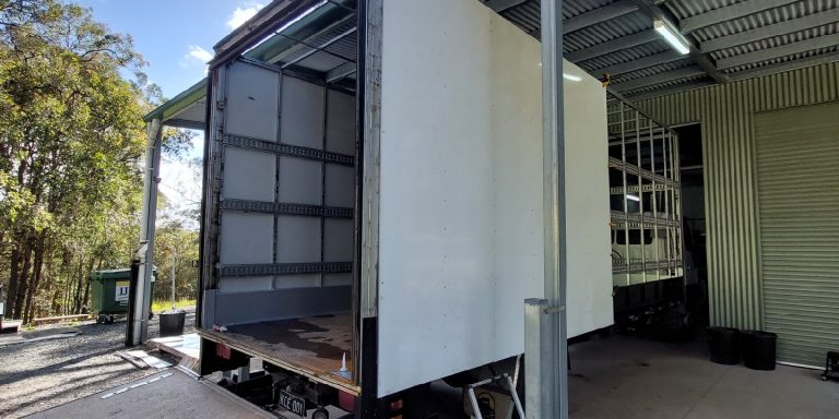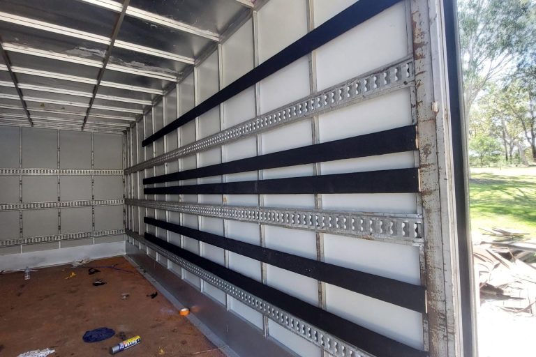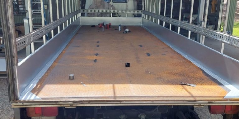 The walls, roof and nose cone were all removed before treating the existing mould. MRU removed all water damaged metal and welded new sections in before painting. The entire truck has been reskinned and new top & bottom combing have been installed along with a new nose cone. The truck has been sealed up to prevent any water damage, and the timber & carpet runners on the internals have been replaced.